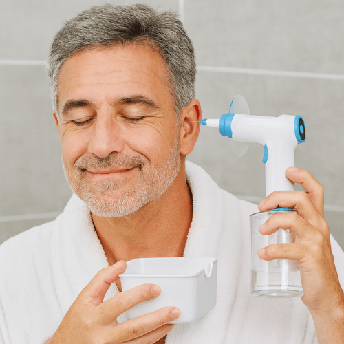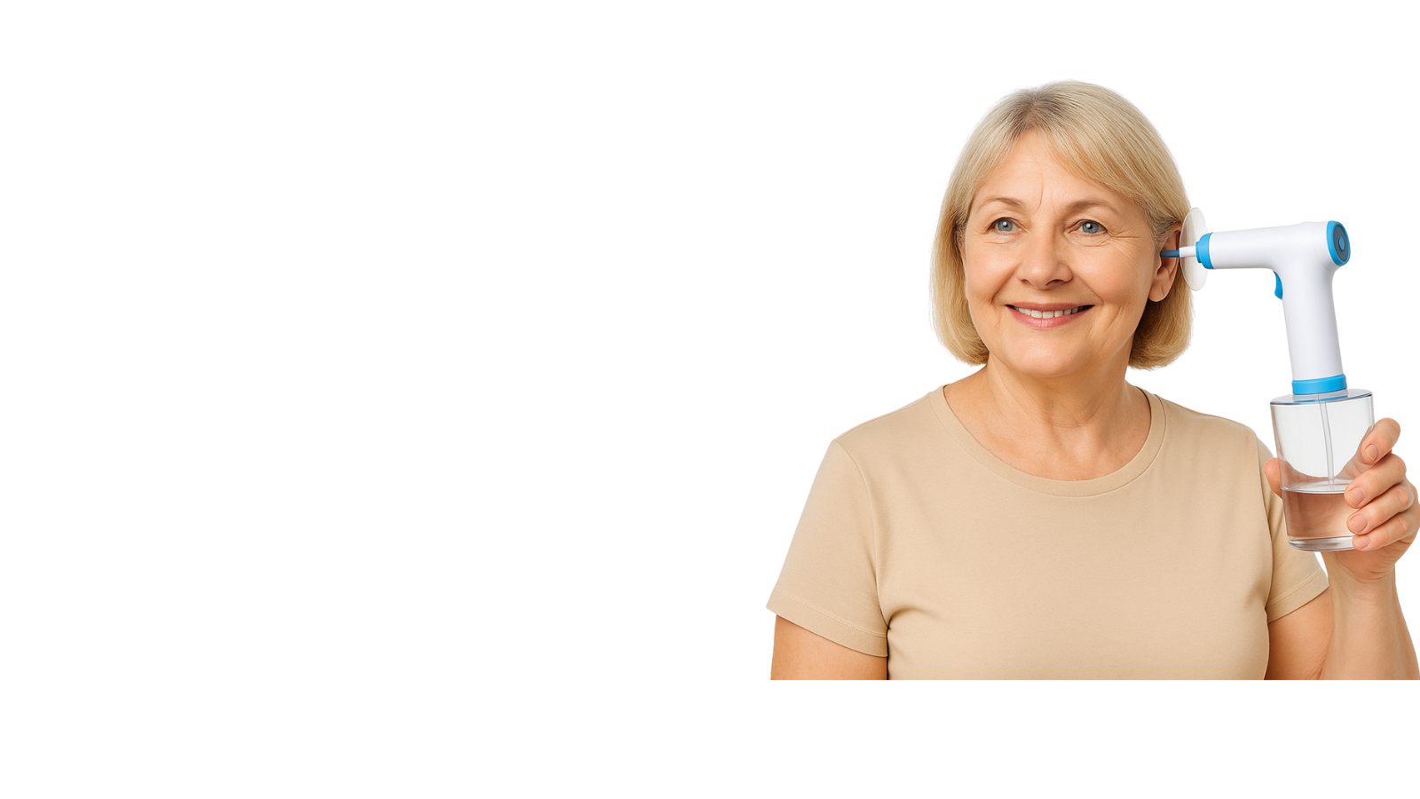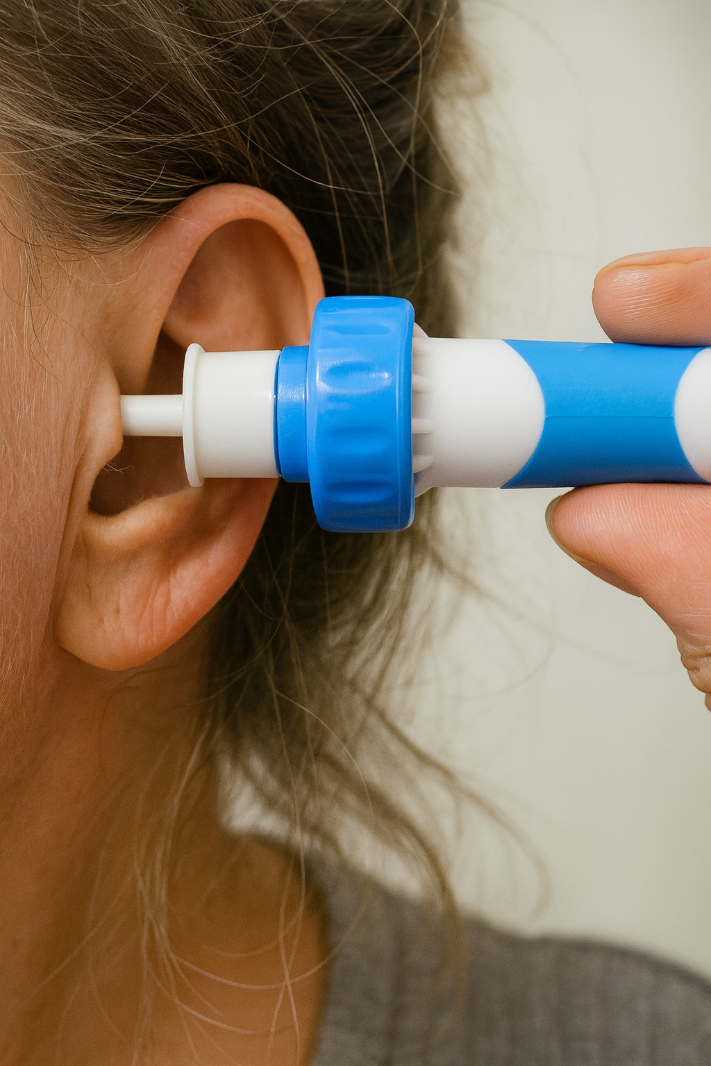 Auriclear verwendet die gleiche Spültechnik, die seit Jahrzehnten in HNO-Praxen genutzt wird – nur sicher für zuhause.Wattestäbchen drücken Schmalz oft tiefer hinein, billige Geräte arbeiten unkontrolliert.Auriclear löst Ablagerungen schonend und befördert sie natürlich nach außen, ohne Risiko für das Trommelfell.
